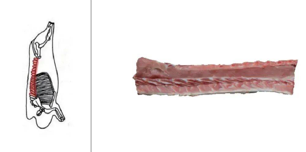 猪脊骨也叫猪龙骨、猪腔骨,自猪的第5、第六胸椎间至腰椎第四处锯断,并取(qu)出背最长肌,表面肉色呈鲜红色的骨头(tou)。骨头(tou)占比较高,肉绝(jue)对少,肉质口感偏偏紧实,也就是(shi)常(chang)说的“有(you)点柴”。