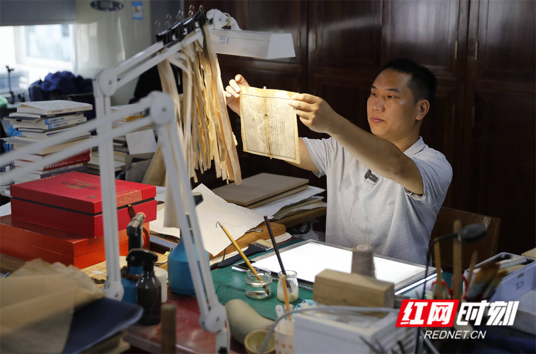 湖(hu)南藏书楼古旧文献(xian)修复组(zu)组(zu)长颜胜。