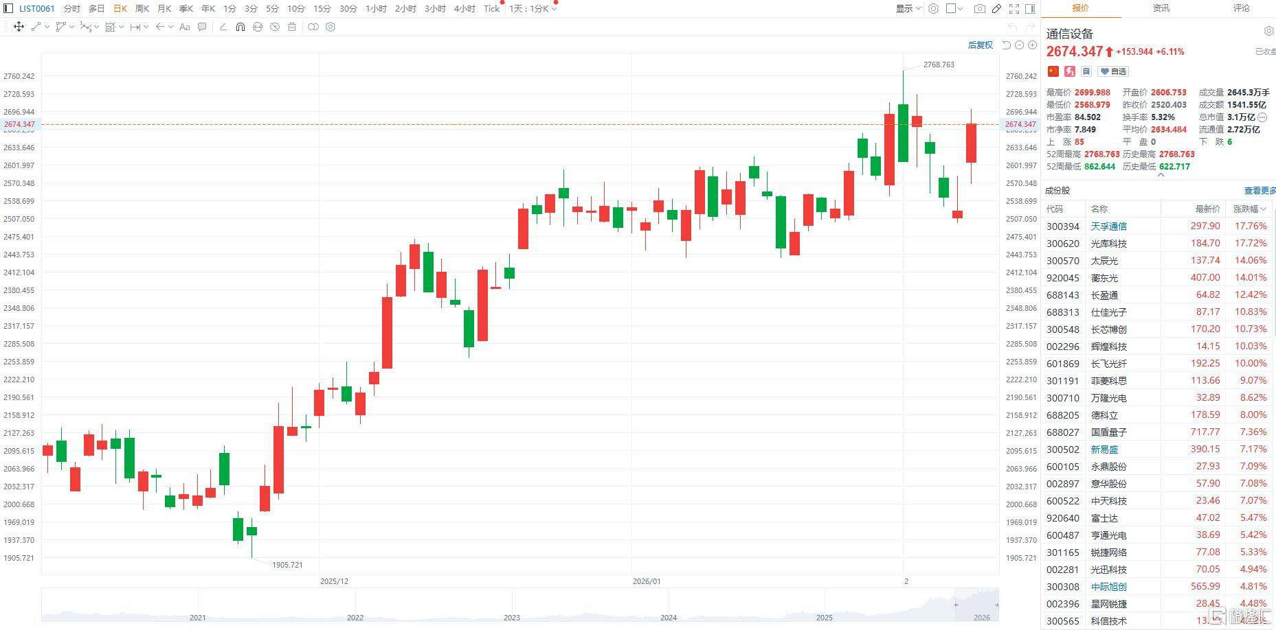 “易中天”表现(xian)强势(shi)。新易隆重涨超7%,中际旭创涨近5%,天孚通信盘中一(yi)度涨停,收涨超17%股价创汗青新高,总市值超2300亿元。