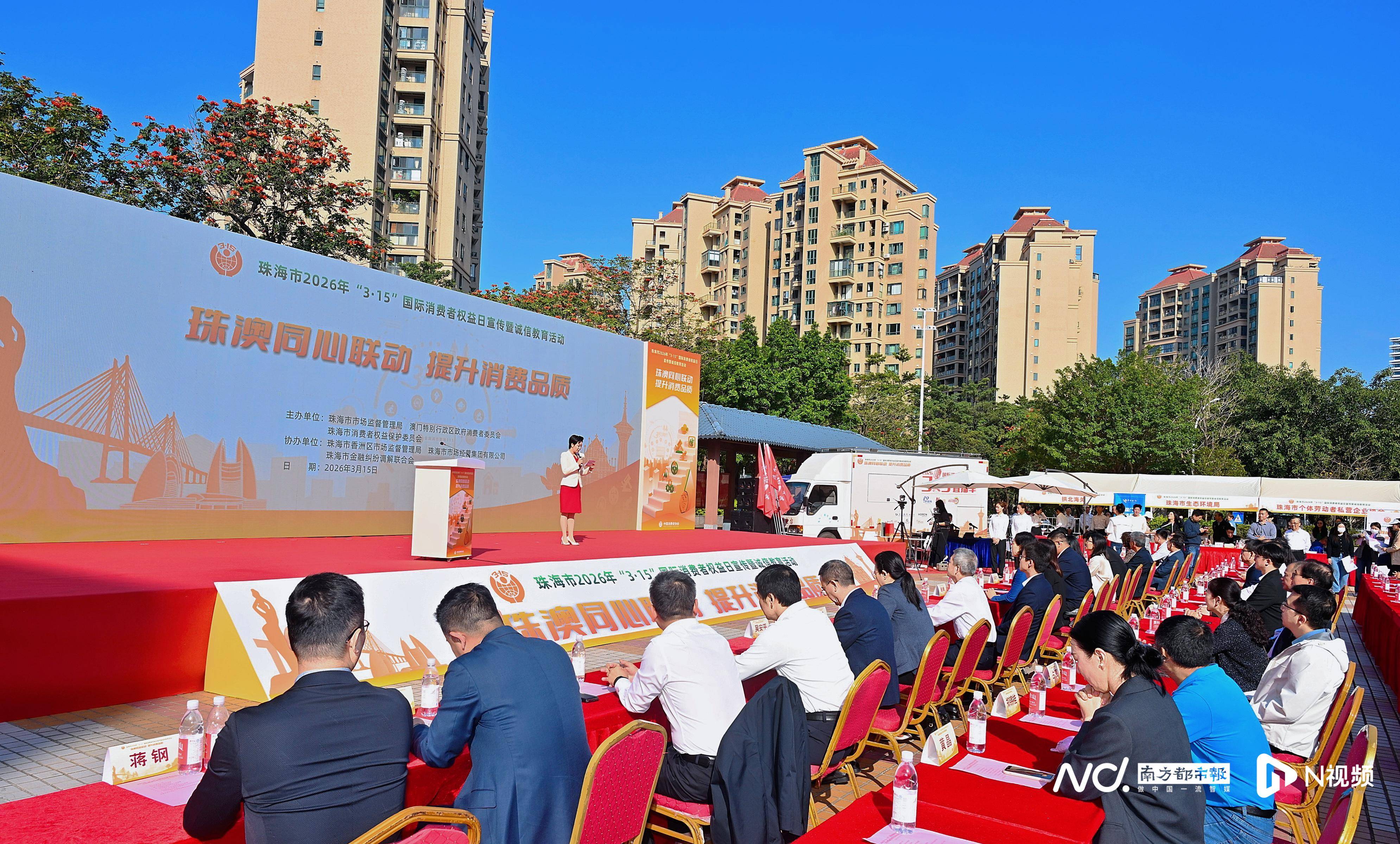 南都讯 3月15日,珠海举行2026年(nian)“3·15”国际消费者权(quan)益(yi)日现场宣扬暨诚(cheng)信教育流(liu)动。全市设(she)置19个(ge)分会场,在星园市场前广场主会场,珠海市市场监视(shi)经(jing)管局、市消费者权(quan)益(yi)珍爱委员(yuan)会联合澳(ao)门迥殊(shu)行政(zheng)区政(zheng)府消费者委员(yuan)会,举行主题(ti)为“珠澳(ao)齐心联动 提升消费质量”的宣扬流(liu)动。